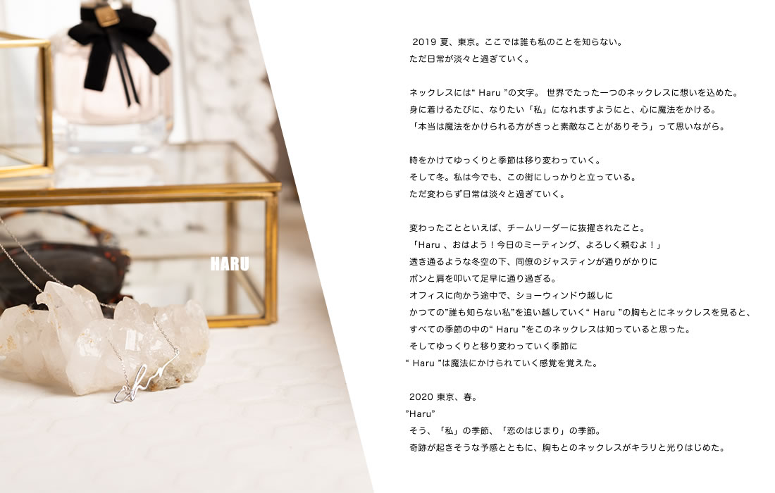 そしてゆっくりと移り変わっていく季節に、“ Haru ”は魔法にかけられていく感覚を覚えた。